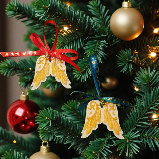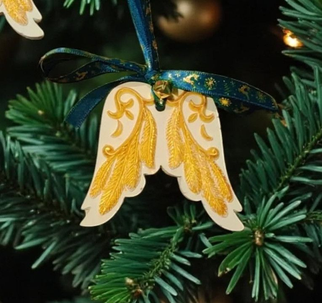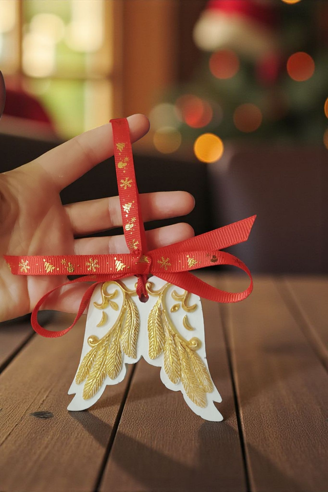 Cette suspension de Noël délicate apportera une touche d’élégance et de poésie à votre sapin ou à votre décoration intérieure. Coulée et décorée à la main, elle représente une paire d’ailes finement travaillées, sublimées par des détails dorés qui captent subtilement la lumière.Suspendue à un ruban rouge ou vert (au choix) orné de motifs festifs, elle évoque la douceur des fêtes, les décorations traditionnelles et les petits instants précieux partagés en fin d’année.